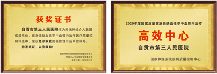 自貢市第三人民醫(yī)院神經(jīng)內(nèi)科是國(guó)家“三級(jí)卒中中心”,“綜合卒中中心”,是國(guó)家神經(jīng)系統(tǒng)疾病研究中心、天壇醫(yī)院神經(jīng)疾病專科聯(lián)盟/介入聯(lián)盟成員單位,國(guó)家衛(wèi)生健康委百萬(wàn)減殘工程專家委員會(huì)授予的“健康中國(guó)中風(fēng)識(shí)別”行動(dòng)試點(diǎn)區(qū)技術(shù)牽頭單位,“川渝共建”省級(jí)臨床重點(diǎn)專科,自貢市神經(jīng)疾病區(qū)域醫(yī)療中心,自貢市急性腦梗死再灌注質(zhì)控中心掛靠單位。曾獲國(guó)家神經(jīng)系統(tǒng)疾病醫(yī)療質(zhì)量控制中心及神經(jīng)介入專業(yè)質(zhì)控專家委員會(huì)授予“急診取栓流程管理示范單位”“高效中心”。中心創(chuàng)新開(kāi)展的急性缺血性卒中“鏈?zhǔn)诫p繞”救治模式獲四川省衛(wèi)生健康委發(fā)文全省推廣。