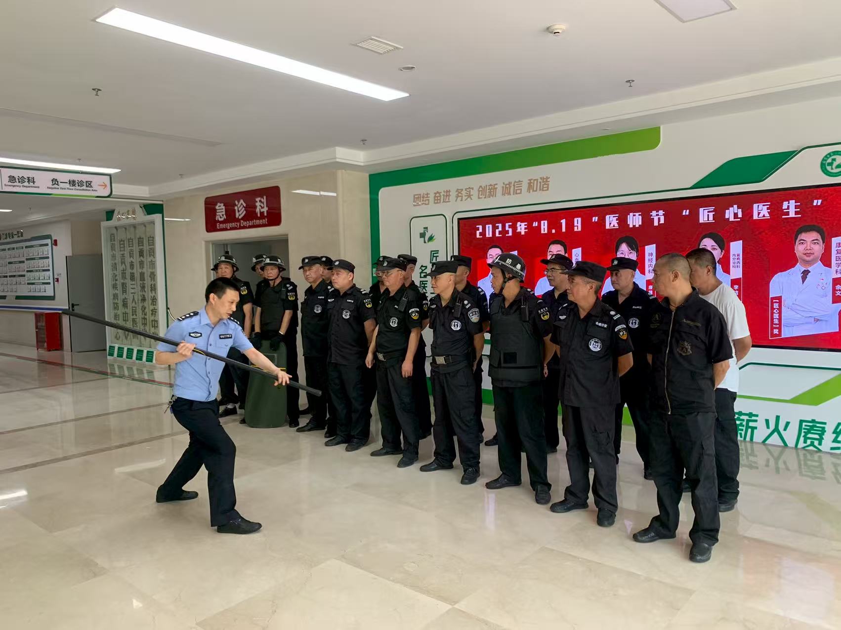 為切實保障醫(yī)務(wù)人員、患者及其家屬的人身與財產(chǎn)安全,維護醫(yī)院的公共安全及正常就醫(yī)秩序,全面提升醫(yī)院應(yīng)對恐怖和暴力傷醫(yī)事件的處置能力,推進規(guī)范建設(shè)最小應(yīng)急單元,8月20日,自貢市第三人民醫(yī)院開展反恐防暴應(yīng)急處置演練。