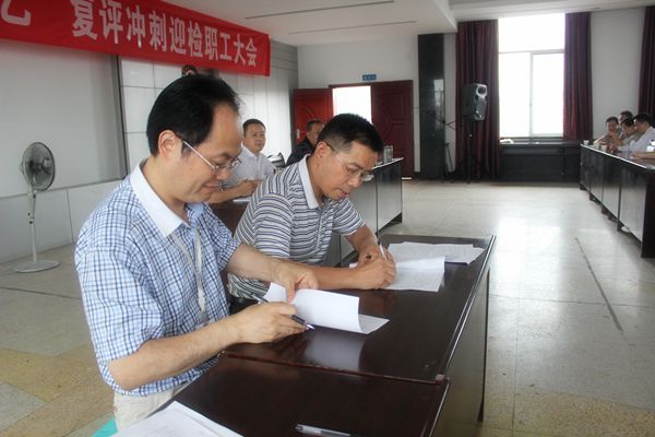 一是在全院掀起迎接“三乙”復(fù)評新高潮,分別于6月23日和25日召開了“三乙”復(fù)評沖刺迎檢干部大會和職工大會。張培森院長在會上強調(diào),全院干部職工要以高度的責(zé)任感、使命感,以飽滿的熱情全身心投入復(fù)評迎檢工作;立足本職崗位,從一件件具體工件做起,將復(fù)評迎檢工作與日常工作有機結(jié)合,相互促進(jìn);服從安排、聽從指揮,要有大局意識,發(fā)揚團(tuán)結(jié)協(xié)作精神,形成全力,確保順利通過“三乙”復(fù)評。全院營造出了濃厚的復(fù)評沖刺迎檢氛圍。
